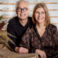 Jeg samarbejder meget gerne med lokale kunstnere eller butikker, for at skabe spændende blikfang med et unikt snit. Hos Øjensynlig i Sorø inviterede jeg den lokale billedkunstner Malan Egholm (malanegholm.art) med i vinduet, for at skabe ekstra blikfang til de forholdsvis små brillestel, der ellers ikke fylder meget i et stort butiksvindue.